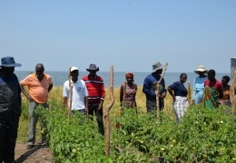 Kikundi cha wakulima wa mbogamboga katika kijiji cha Mumagunga ambao ni wanufaika wa mradi wa kuhimili athari za mabadiliko ya Tabianchi katika Halmashauri ya Wilaya ya Bunda siku ya tarehe 2...